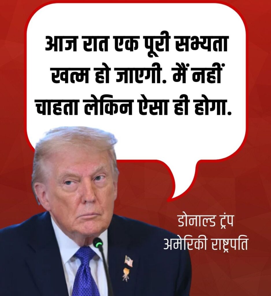“एक पूरी सभ्यता खत्म हो जाएगी” – ट्रंप की अंतिम चेतावनी