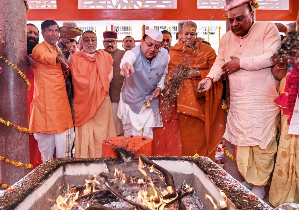 जगद्गुरु शंकराचार्य आश्रम में, शंकराचार्य स्वामी राजराजेश्वराश्रम महाराज के साथ मुख्यमंत्री पुष्कर सिंह धामी ने किया हवन यज्ञ