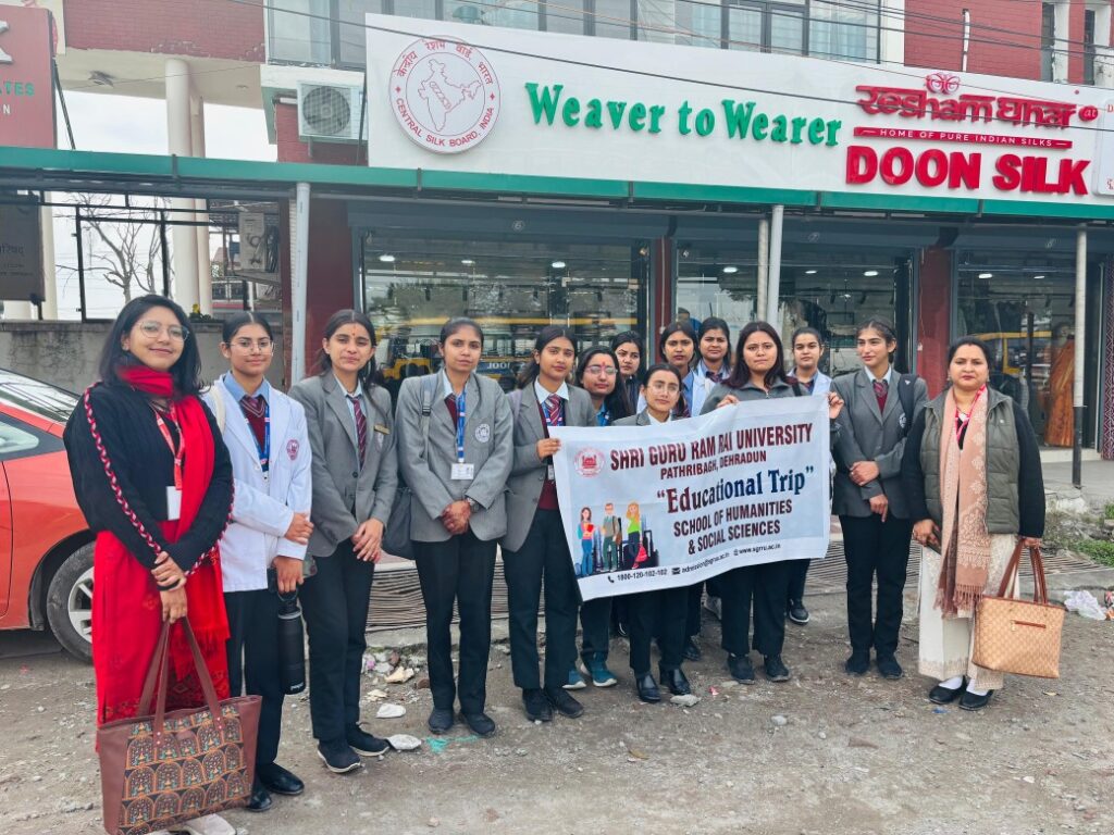 देहरादून। श्री गुरु राम राय विश्वविद्यालय के छात्र-छात्राओं ने शनिवार को शैक्षणिक भ्रमण के तहत प्रेमनगर स्थित उत्तराखण्ड कोऑपरेटिव रेशम फेडरेशन लिमिटेड जाकर रेशम कीट पालन को जाना एवं उससे जुड़ा रेशम उत्पादन समझा वहीं दूसरी ओर प्रीतम रोड स्थित चेशायर होम जाकर दिव्यांग बच्चों की परेशानियां भी समझने की कोशिश की।