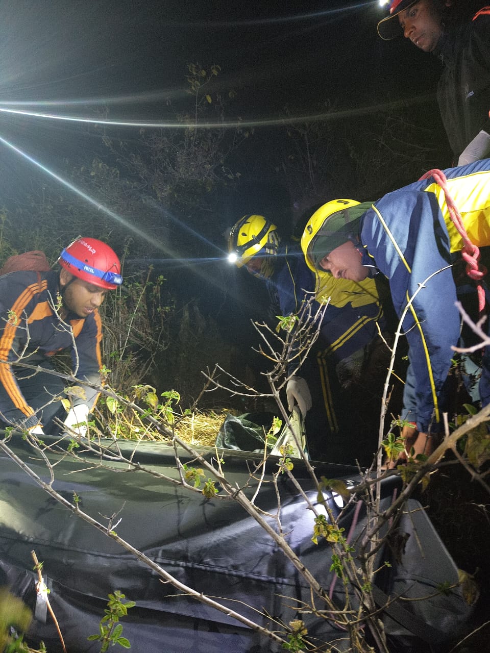 SDRF टीम द्वारा तत्काल घटनास्थल पर पहुंचकर खाई में उतरकर DDRF टीम के साथ मिलकर रेस्क्यू ऑपरेशन चलाया गया। रात्रि के घनघोर अंधेरे व विषम परिस्थितियों के चलते कड़ी मशक्कत के बाद तीनों व्यक्तियों को खाई से निकालकर स्ट्रेचर के माध्यम से मुख्य मार्ग तक लाया गया तथा एम्बुलेंस के माध्यम से जिला अस्पताल रुद्रप्रयाग भेजा गया जहां डाक्टर द्वारा तीनों व्यक्तियों को मृत घोषित किया गया।