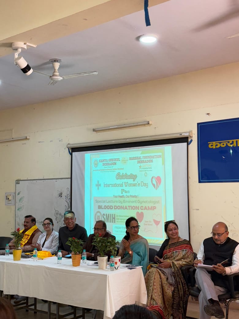 दिनांक 7 मार्च 2025, को कन्या गुरुकुल परिसर, देहरादून तथा हर्षल फाउंडेशन के तत्वावधान में महिला दिवस की पूर्व संध्या पर स्वास्थ्य जागरूकता एवं रक्तदान शिविर का आयोजन किया गया। इस अवसर पर महिला चिकित्सक डॉ. प्रीती मिश्र ने महिलाओं के स्वास्थ्य से संबंधित महत्वपूर्ण जानकारियाँ प्रदान की और विद्यालय की बालिकाओं के इस विषय से सम्बंधित प्रशनो के उत्तर भी दिए और सभी कन्यायो को सैनिटरी पैड बाँटे।