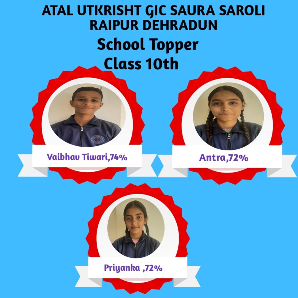 सीबीएसई बोर्ड की परीक्षा के नतीजे घोषित हो गए हैं राजधानी देहरादून के अटल उत्कृष्ट जीआईसी स्कूल सोडा सरोली रायपुर के छात्र-छात्राओं ने बेहतर प्रदर्शन किया है इंटरमीडिएट और हाई स्कूल की परीक्षा में छात्र-छात्राओं में जहां 92 फ़ीसदी से अधिक अंक हासिल किया है।