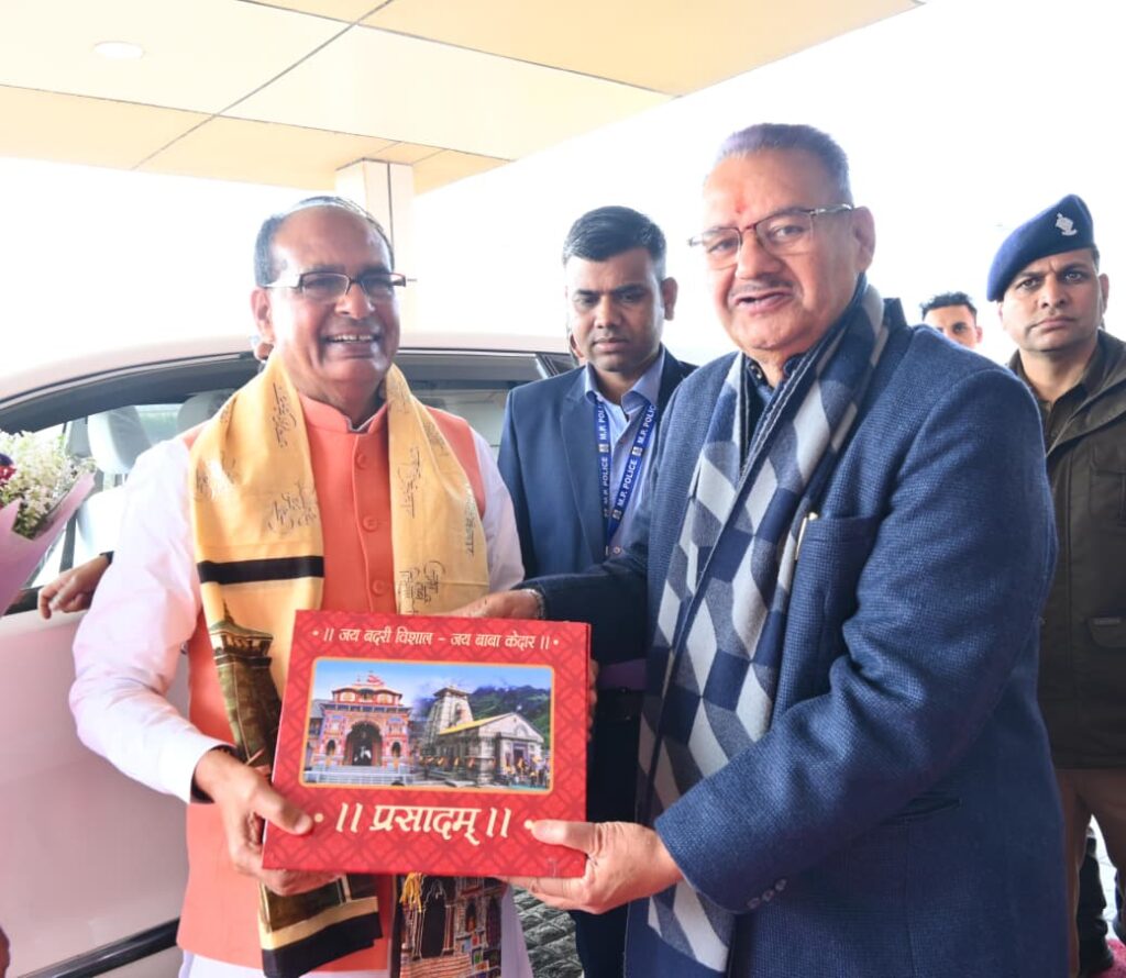 जॉलीग्रांट एयरपोर्ट पर केंद्रीय मंत्री शिवराज सिंह चौहान का भव्य स्वागत; कृषि मंत्री गणेश जोशी ने भेंट किया बदरी विशाल का प्रसाद