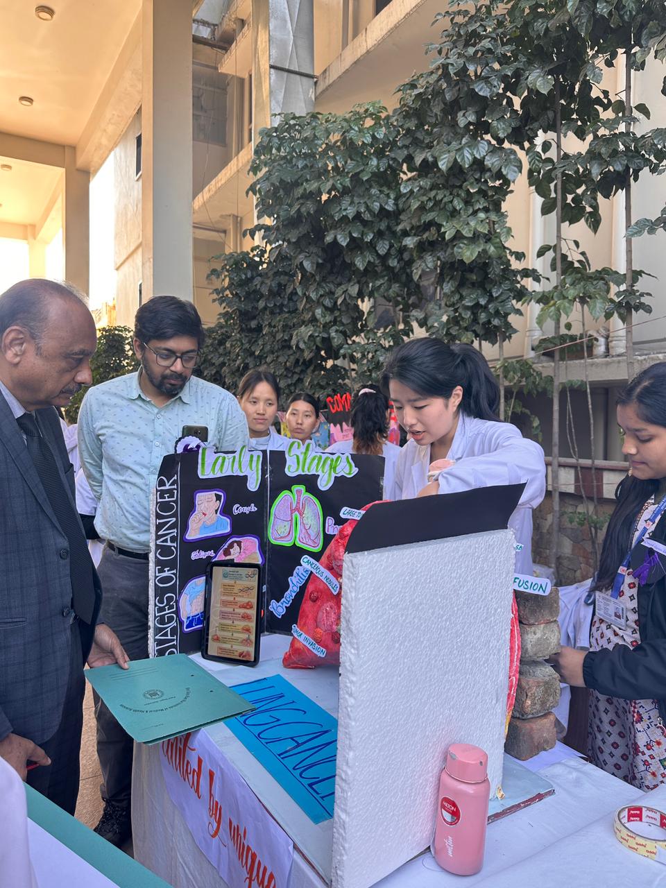 जागरूकता अभियान के तहत स्वास्थ्य शिक्षा सत्र आयोजित किया गया, जिसमें चार्ट्स और पोस्टरों के जरिए सामान्य कैंसर और उनके जोखिम कारकों की जानकारी दी गई। पोस्टर प्रतियोगिता और मॉडल प्रदर्शनी में छात्रों ने अपनी रचनात्मकता के जरिए कैंसर रोकथाम के संदेश दिए। उत्कृष्ट प्रदर्शन करने वाले छात्रों को निर्णायक मंडल द्वारा पुरस्कृत किया गया।